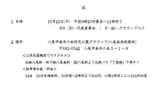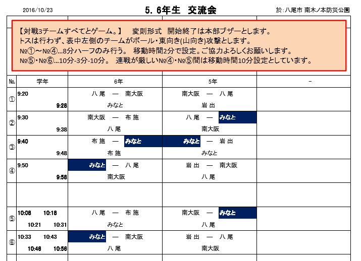 10月23日は4年生以下が鶴見緑地で「大阪市体育協会会長杯」です。
