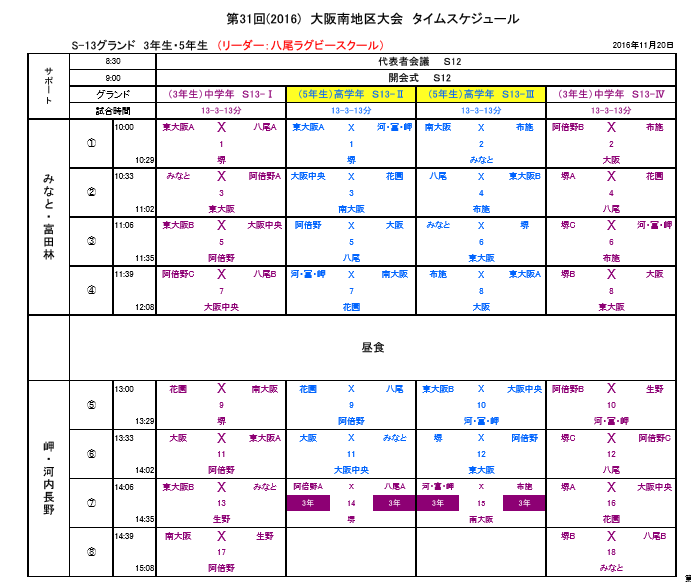 南地区大会の組み合わせです(最新版)
