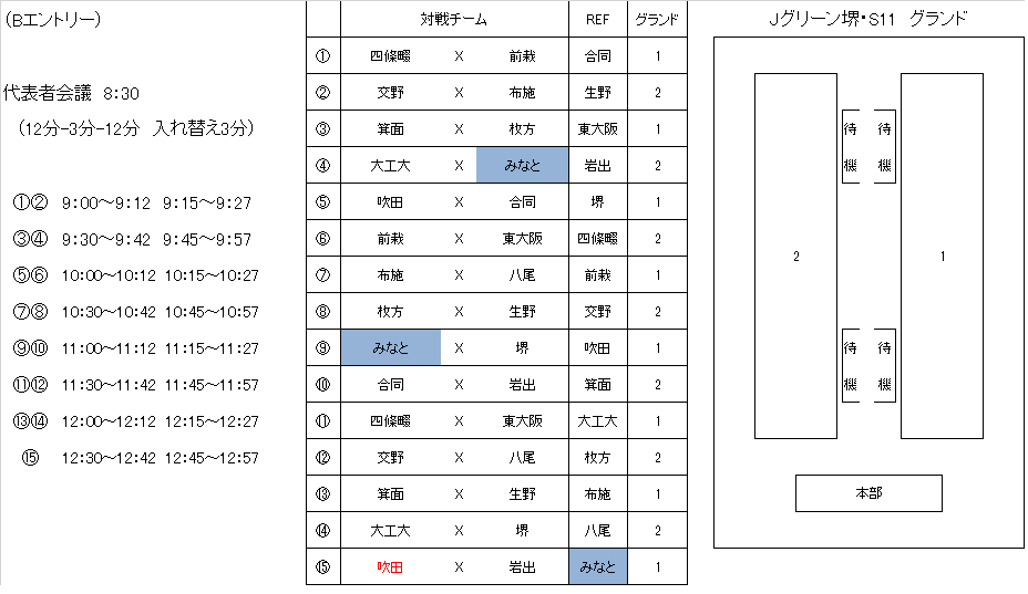 1月15日(日) 試合時間9:30 11:00