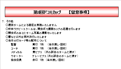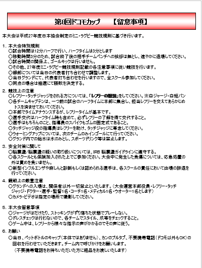 ドコモカップ留意事項