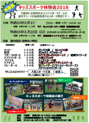 申込方法 「大阪スポーツ王国ホームページ」の応募フォームより必要事項を入力