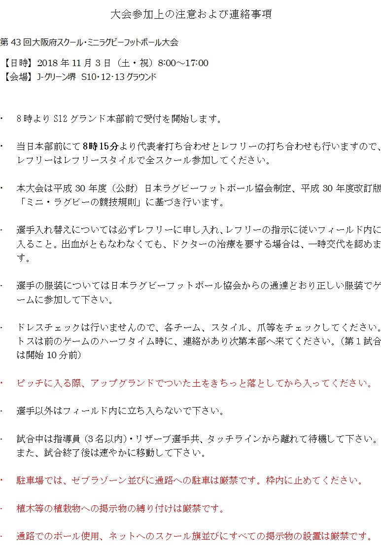 第43回大阪府スクール・ミニラグビーフットボール大会