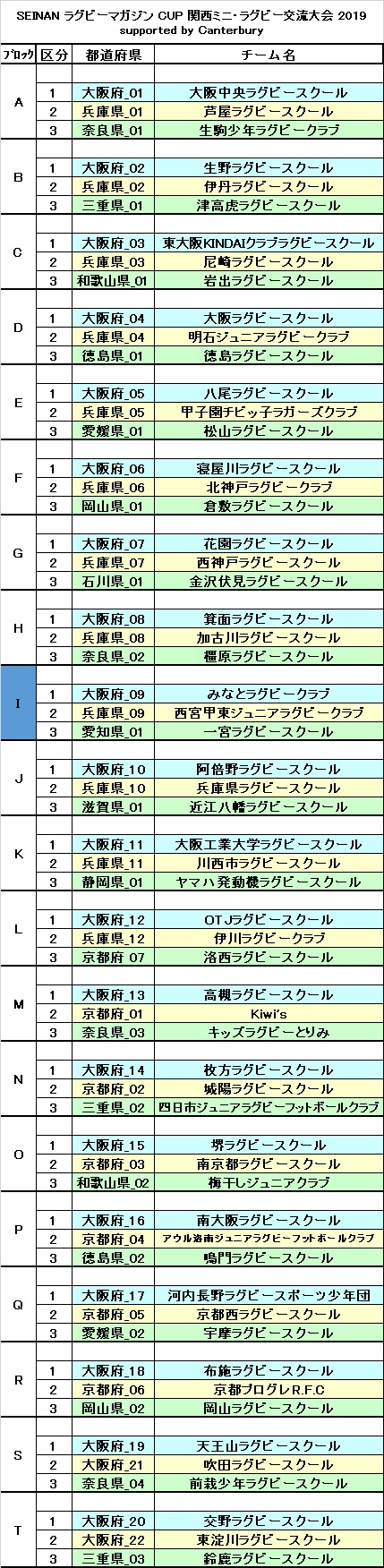 参加チーム :(公財)日本ラグビーフットボール協会に個人登録されている小学生(高学年)を対象とし、関西 ラグビーフットボール協会所属スクールによる単独チーム。 複数スクールによる合同チームは認めない。なお、参加チームは、1スクール1チームとする。