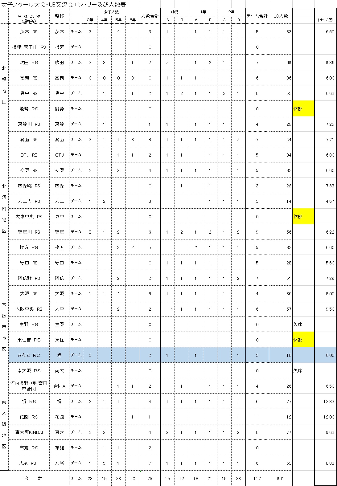 第二回 低学年・女子交流会 登録表(女子組合せ)