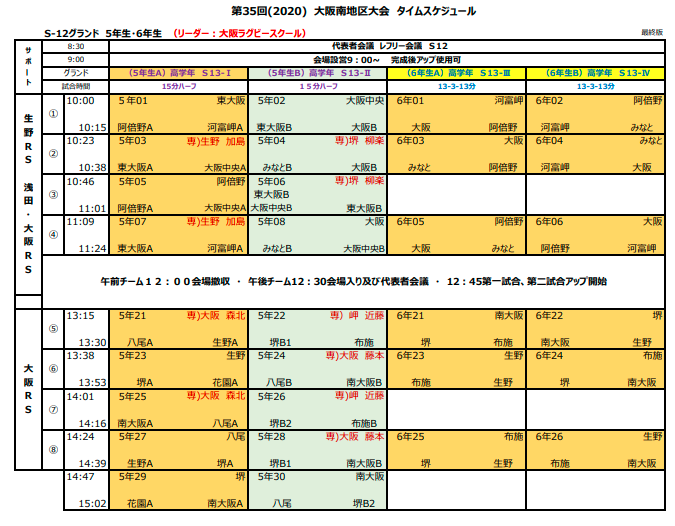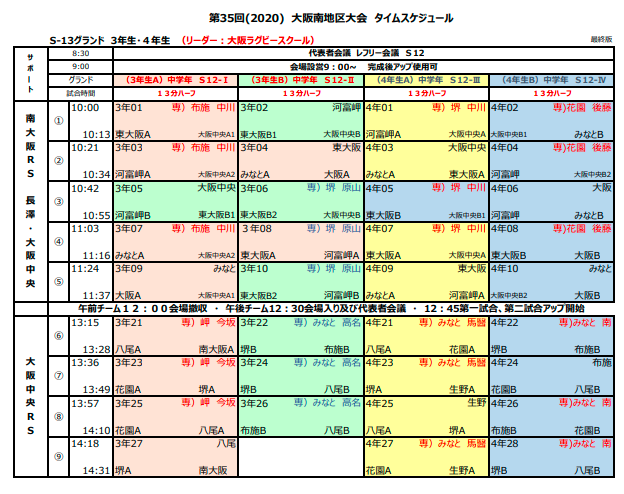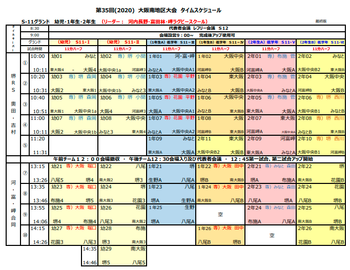11月15日 大阪南地区大会 組み合わせ(最終版)