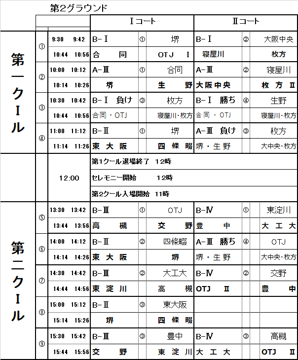 6年生卒業記念親善試合 第二グラウンド組み合わせ